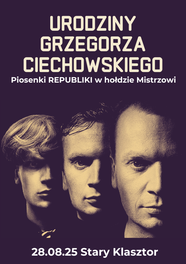 W przeddzień rocznicy, 28 sierpnia klub Stary Klasztor zaprasza do Sali Gotyckiej na koncert z piosenkami Republiki - jednego z najważniejszych zespołów na współczesnej polskiej estradzie z nieodżałowanym Grzegorzem Ciechowskim na czele.