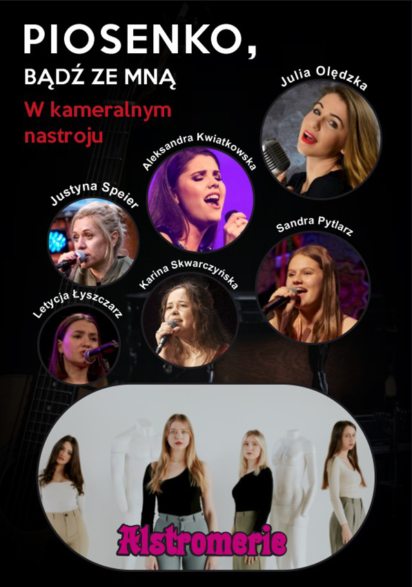 Koncert ma charakter kameralny, w którym zabrzmią mniej i bardziej znane piosenki. Wystąpią bydgoskie wokalistki - Aleksandra Kwiatkowska (TylkoŚpiewam), Justyna Speier (zespół „Remont”) i gościnnie Julia Olędzka, wokalistka związana z TVN. Wystapią też laureatki ogólnopolskich i międzynarodowych festiwali piosenki - Letycja Łyszczarz (Lublin), Sandra Pytlarz (Żywiec), Karina Skwarczyńska (Bielsko - Biała). Gościem specjalnym będzie katowicki zespół „Alstromerie”, śpiewający piosenki z repertuaru Polskich gwiazd piosenki, min. Marka Grechuty, Zbigniewa Wodeckiego, a także te z twórczości Agnieszki Osieckiej. Zespół zaśpewa także piosenki ze swojego repertuaru i zaakompaniuje wszystkim innym wokalistkom.