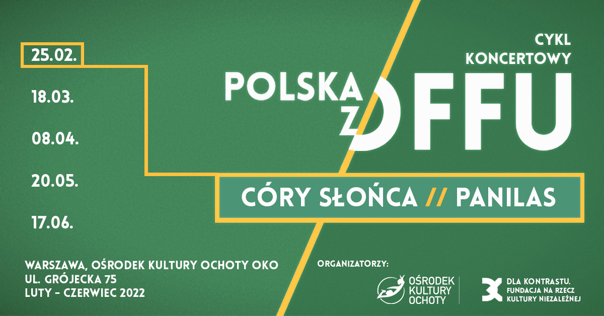 Polska z Offu zaprasza na cykl koncertów niezależnych polskich zespołów: co miesiąc zaprezentujemy Wam po dwie kapele, w każdym miesiącu szukając nowych gatunkowych inspiracji, zestawiając na scenie muzyków nieoczywistych i wartych poznania!