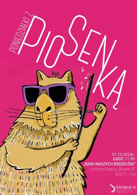 Kapibara Barbara zaprasza na cykl koncertów „Poniedziałki z piosenką”, stworzony z myślą o najmłodszych. Te muzyczne spotkania wprowadzą dzieci w świat znanych i lubianych melodii z bajek. W trakcie koncertu dzieci przeniosą się do świata klasycznych bajek, które znali i kochali ich rodzice oraz dziadkowie. W programie usłyszymy piosenki z takich kultowych bajek jak: „Pszczółka Maja”, „Reksio”, „Miś Uszatek”. To niezapomniana muzyczna przygoda, która wprowadzi dzieci w świat dawnych, kultowych melodii, rozwijając ich wyobraźnię i wrażliwość na muzykę!