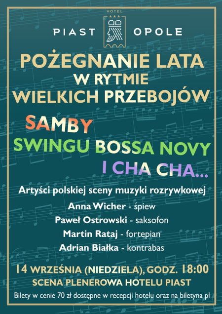 "Pożegnanie lata w rytmie wielkich przebojów Samby, Swingu, Bossa Novy i Cha Cha..."