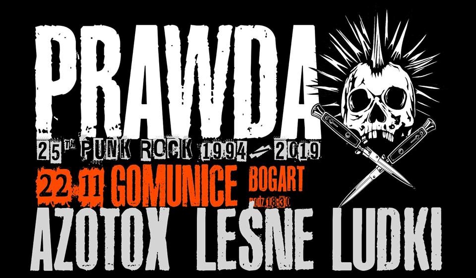 PRAWDA / Wrocławska formacja Punk Rockowa założona latem 1994 roku przez Skutera i Melona. Swój debiutancki materiał, „Biologia z drugiej strony” Prawda zarejestrowała w grudniu 1994 roku. Przez kilkanaście lat funkcjonowania nagrała pięć regularnych albumów, kilka ep-ek, album kompilacyjny wydany w Czechach i wiele składanek. Działalność zespołu zawieszona w 2009, Reaktywowany na jesień 2016 roku. Obecnie jeden z najprężniej działających formacji punk rockowych na Polskiej scenie. Prawda promuje album "Chaos in Poland" premiera 29.09.2017