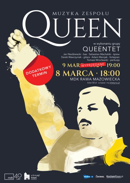 Twórcy i muzycy projektu Queen Symfonicznie, którzy od lat przemierzają kraj i zagranicę z repertuarem Freddiego, Briana, Johna i Rogera postanowili zaprezentować fanom nowe wcielenie. Tak narodziła się 5-osobowa grupa QUEENTET. Na naszej scenie usłyszymy ich 9 marca. Będzie to wyjątkowy, muzyczny prezent od nas i Piotra Irli, burmistrza Rawy Mazowieckiej z okazji święta wszystkich pań!