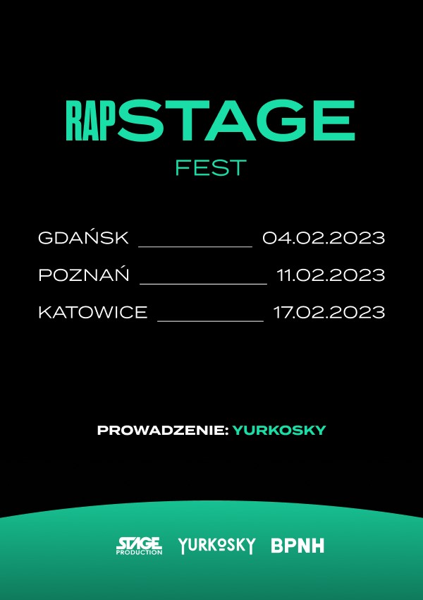 Już na początku lutego wszystkich spragnionych rapu na najwyższym poziomie zapraszamy na RAP STAGE FEST w Gdańsku! Na scenie usłyszycie Gibbsa, Opała, Miszela, Asstera, Jodę i Lubina, a zatem reprezentantów różnorodnych nurtów – od starej szkoły, po świeżych graczy, którzy jeszcze sporo w polskiej rap scenie namieszają! Widzimy się!