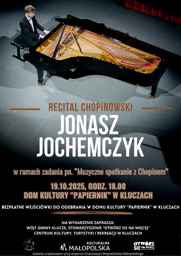 Serdecznie zapraszamy na recital Chopinowski Jonasza Jochemczyka w ramach zadania pn. "Muzyczne spotkanie z Chopinem"