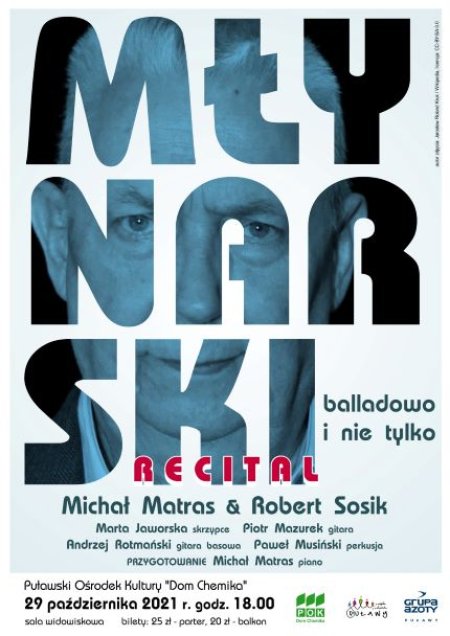 Na recital „Młynarski. Balladowo i nie tylko” zapraszamy 29 października br. o godz. 18:00 do sali widowiskowej POK. Bilety w cenie 25 zł (parter) i 20 zł (balkon) do nabycia w kasie POK, tel.: 81 458 67 21.