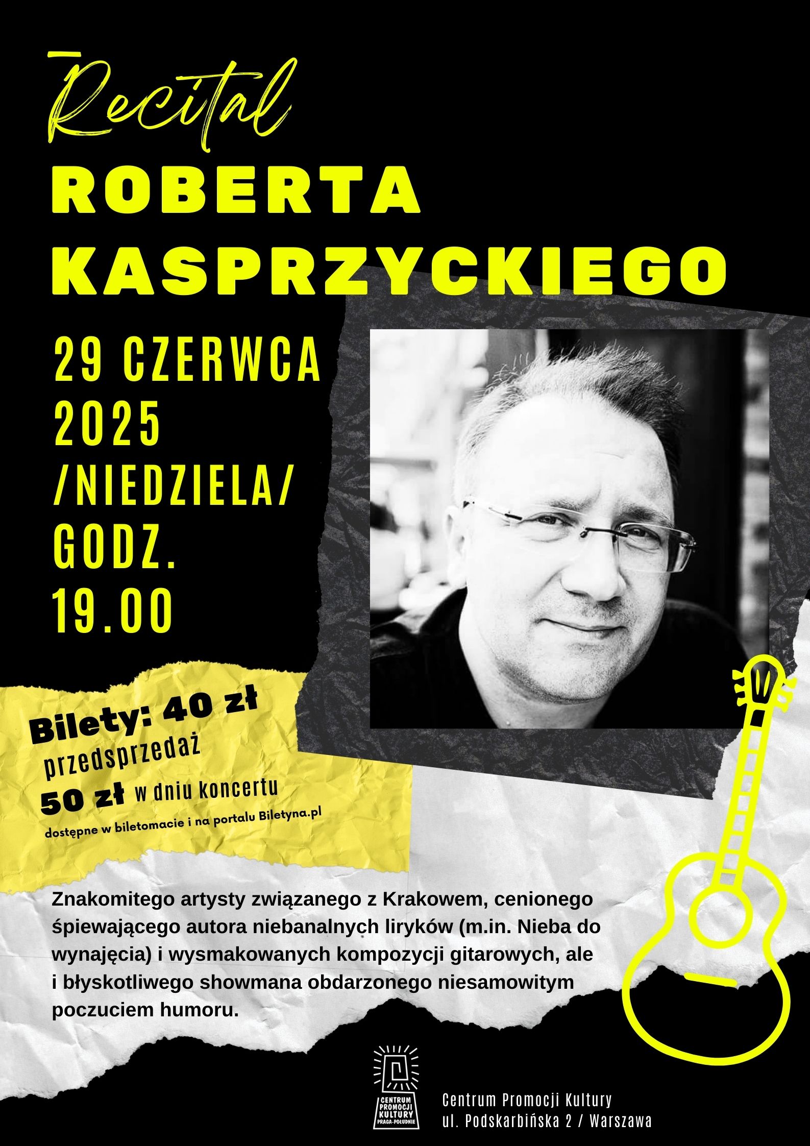 Znakomitego artysty związanego z Krakowem, cenionego śpiewającego autora niebanalnych liryków (m.in. Nieba do wynajęcia) i wysmakowanych kompozycji gitarowych, ale i błyskotliwego showmana obdarzonego niesamowitym poczuciem humoru.