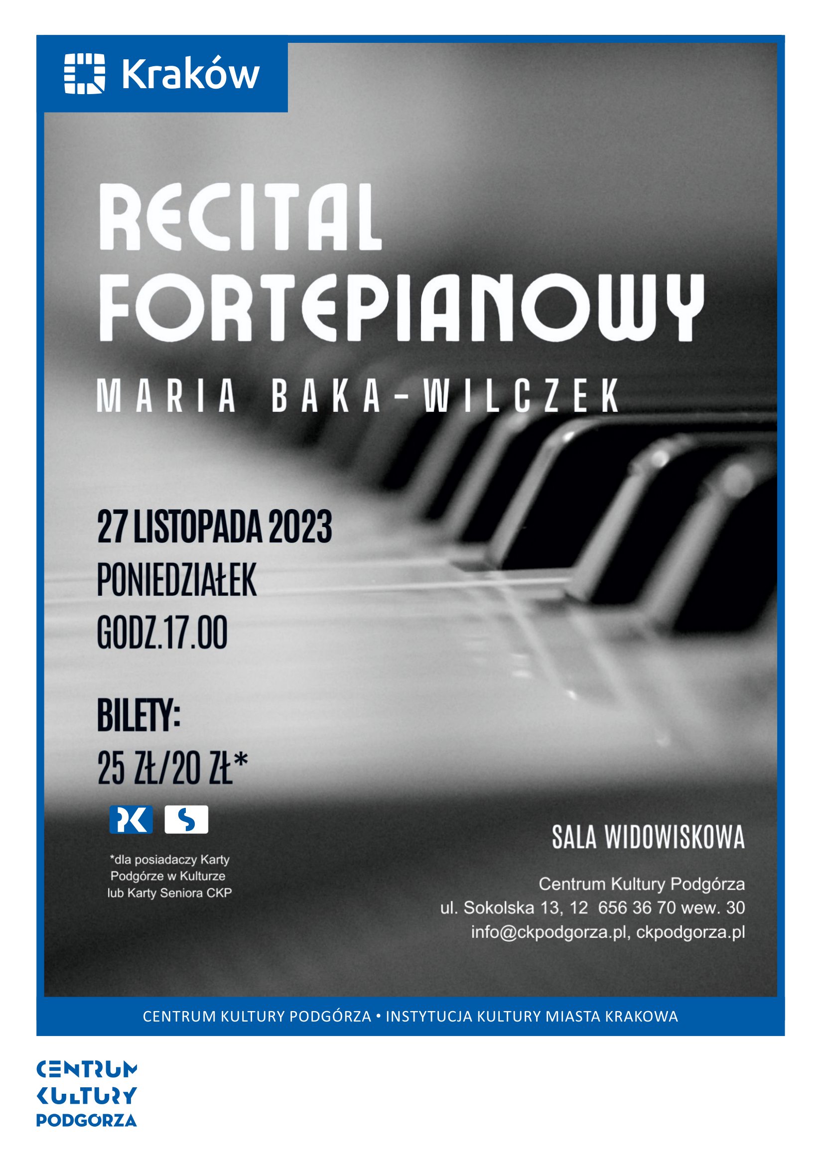 Recital fortepianowy Marii Baka-Wileczek W programie: utwory kompozytorów polskich Cena biletów : 20 zł/ 25 zł