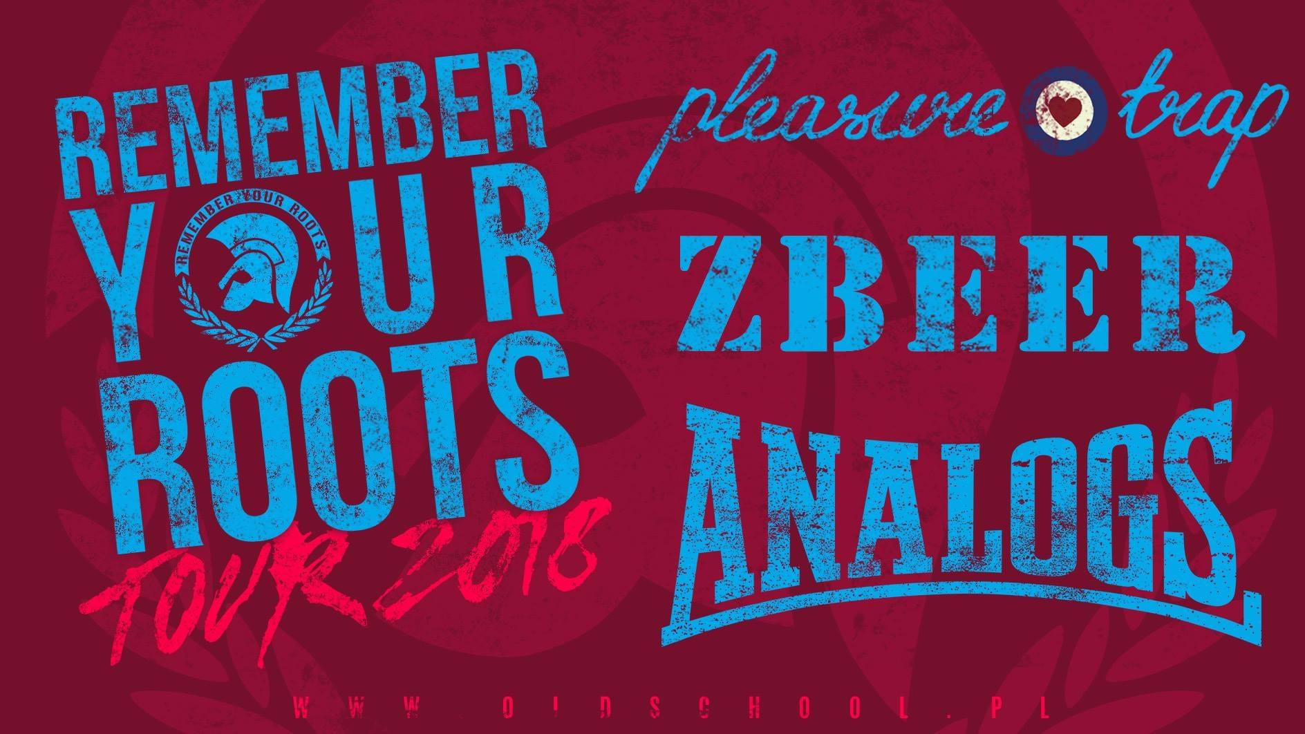 Zapraszamy na koncert który jest częścią organizowanej przez Oldschool Records trasy REMEMBER YOUR ROOTS która jesienią i zimą 2018 roku odwiedzi kilka polskich miast. Podczas imprezy zagrają dwie legendy polskiej sceny streetpunk, zespoły The Analogs i Zbeer wspierani przez warszawski pleasure trap.