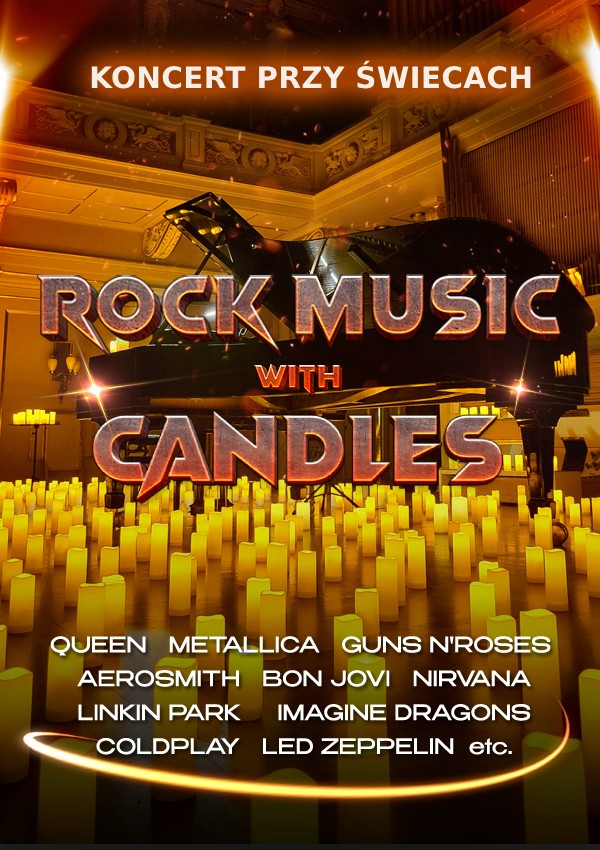 W ten wieczór zaprezentujemy publicznośći magiczny koncert przy świetle tysiąca świec, w którym dźwięk fortepianu połączy się w harmonii z rockowymi kompozycjami ostatnich dziesięcioleci. Czekają na Ciebie najsłynniejsze przeboje muzycznych gigantów, takich jak: Queen, Metallica, Guns N'Roses, Aerosmith, Nirvana, Linkin Park, Bon Jovi, Imagine Dragons, Iron Maiden, Coldplay, Led Zeppelin, Pink Floyd i wiele innych legend muzyki.
