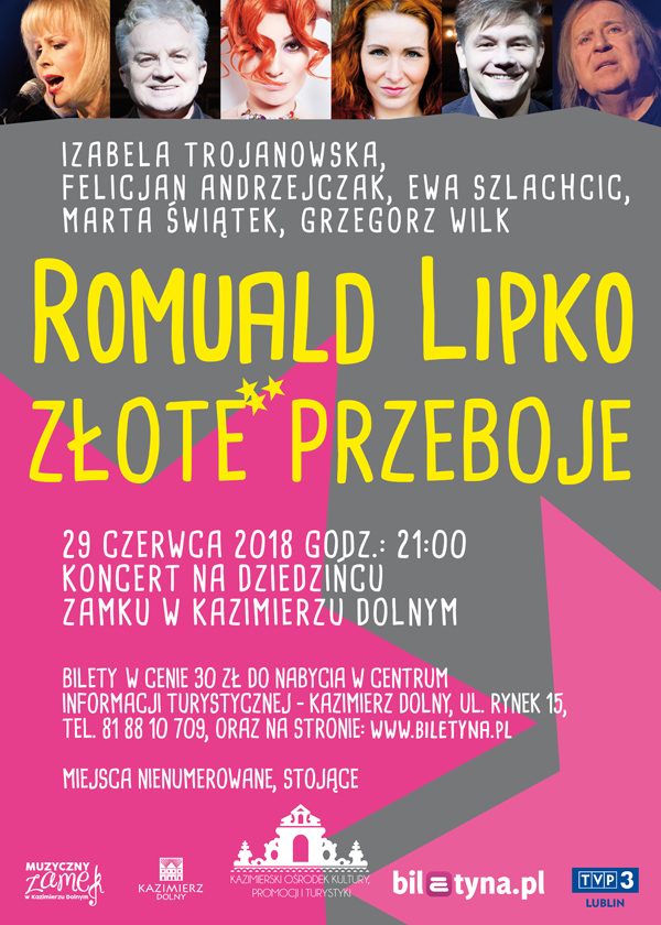 Romuald Lipko – kompozytor najbardziej znanych i lubianych polskich hitów wszechczasów, wyrusza w trasę koncertową zatytułowaną „ROMUALD LIPKO – ZŁOTE PRZEBOJE”. Podczas koncertów usłyszymy same największe przeboje, które napisał dla: Urszuli, Anny Jantar, Zdzisławy Sośnickiej, Izabeli Trojanowskiej i Budki Suflera!