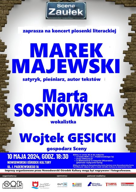 Zapraszamy do Nowodworskiego Ośrodka Kultury na koncert piosenki literackiej, który jak zawsze poprowadzi gospodarz Sceny „największy bard świata” Wojtek Gęsicki.