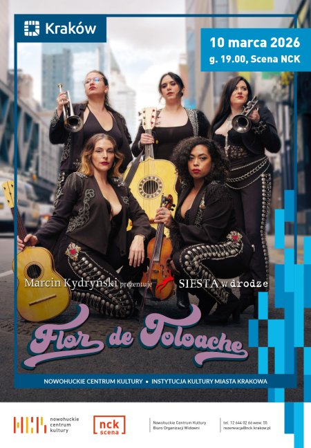 Kolejny w Nowohuckim Centrum Kultury koncert w ramach cyklu SIESTA w drodze. Tym razem na scenie NCK zobaczymy barwny i nagrodzony Grammy zespół Flor De Toloache porwie Was swoją energią, pasją i kobiecą siłą! Oto Flor de Toloache. Muzyka świata Fridy Kahlo.