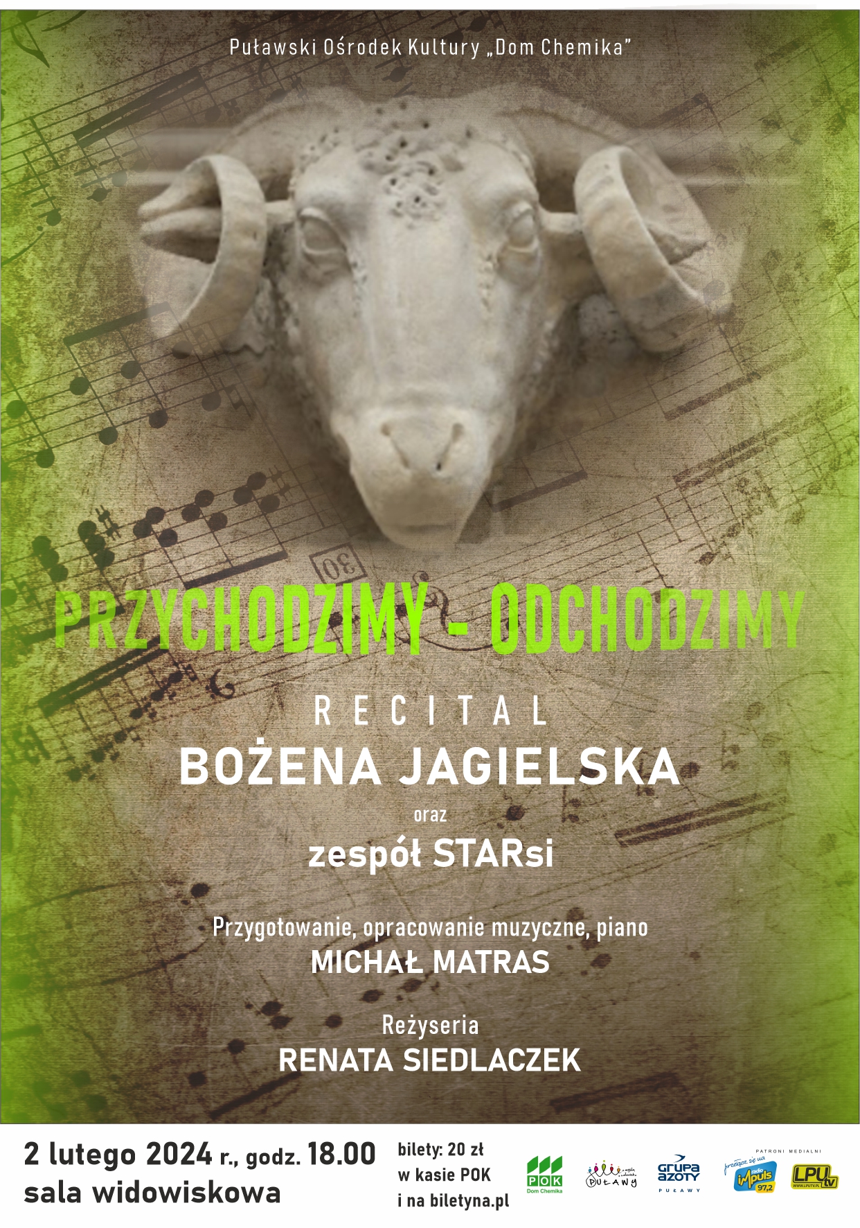 o godz. 18:00 do sali widowiskowej POK „Dom Chemika”. Bilety w cenie 20 zł do nabycia w kasie
