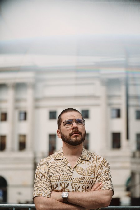 piosenkopisarz, gitarzysta, wokalista; Ślązak mieszkający w Warszawie; Przejechał ze swoimi