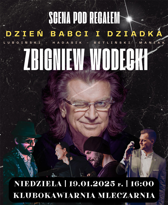 Zapraszamy Państwa na UNIKATOWY program artystów Sceny pod Regałem, podczas którego przypomną oni najpiękniejsze przeboje wielkiego mistrza polskiej estrady - Zbigniewa Wodeckiego.