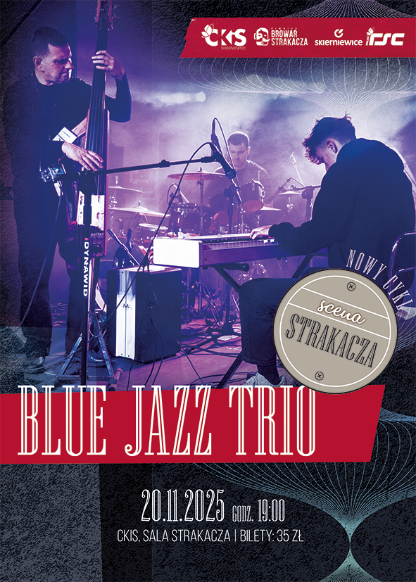 Centrum Kultury i Sztuki w Skierniewicach oraz Restauracja Piwnica Browar Strakacza zapraszają na kolejne wydarzenie nowej „Sceny Strakacza”. 20 listopada (czwartek) o godzinie 19:00 w Sali Strakacza wystąpi zespół Blue Jazz Trio.