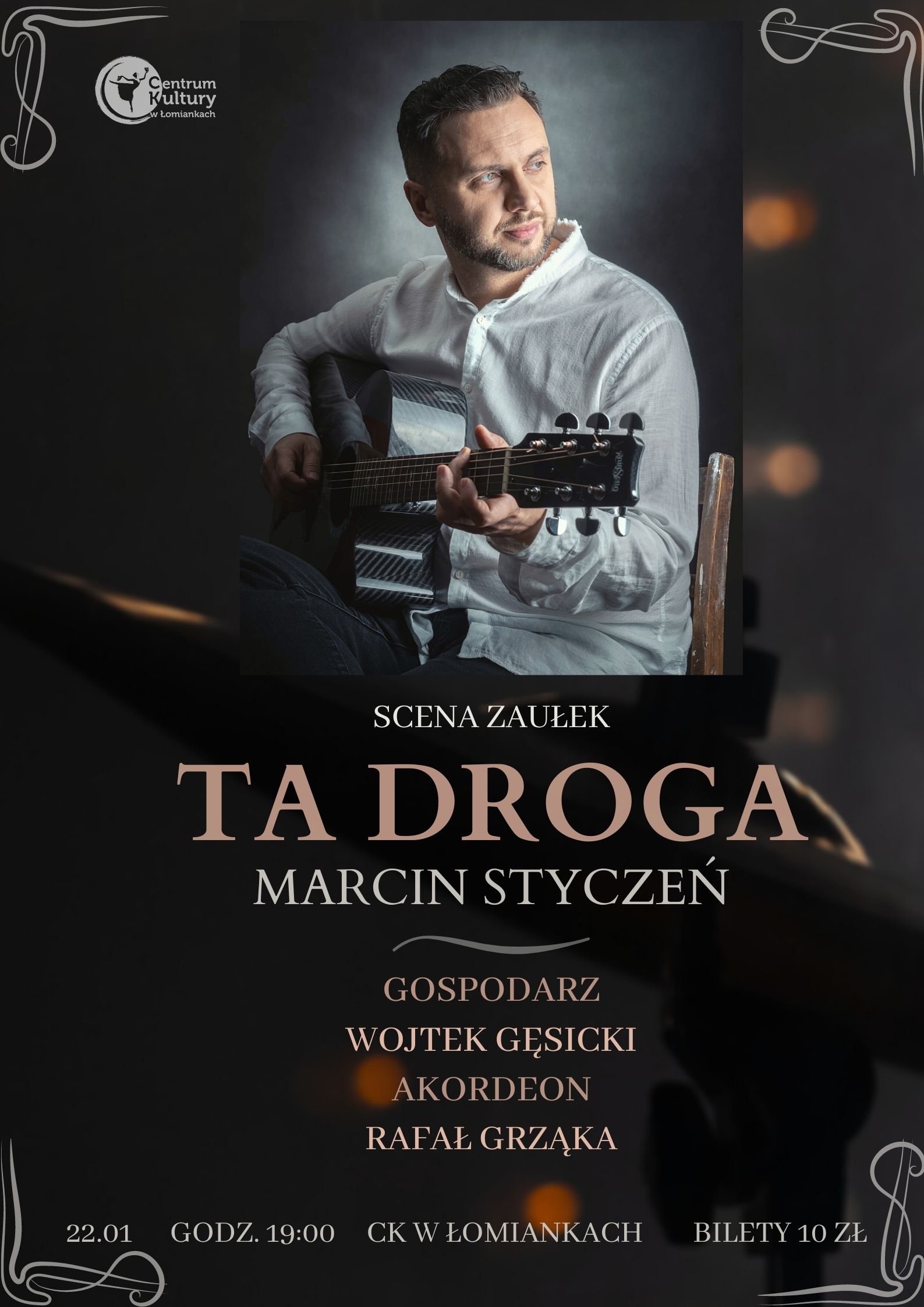 Artysta wystąpi w koncercie pt. „Ta droga nie wiedzie w górę, ta droga wiedzie w głąb” - tak rozpoczyna się jedna z piosenek Marcina Stycznia, która stała się tytułem autorskiego koncertu. To zapis duchowej i artystycznej podróży, którą Marcin Styczeń wspólnie ze swoją publicznością odbywa od ponad 20 lat. Poszczególne przeboje artysty są przystankami w tej wędrówce.