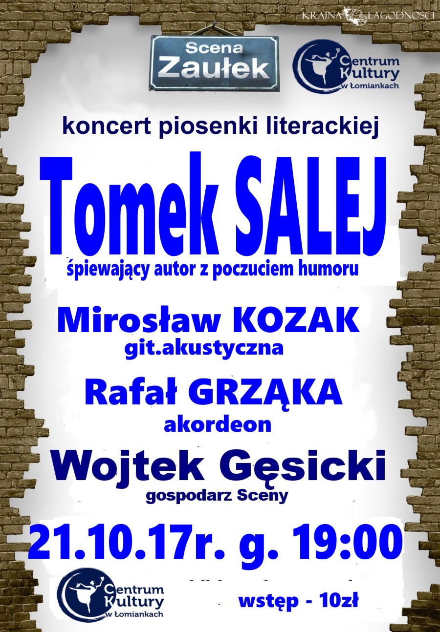 Tomasz Salej to olsztyński poeta i bard tworzący od niemal 30 lat utwory zaliczane do tzw. „krainy łagodności”. Podczas koncertów z wyraźnym upodobaniem proponuje publiczności wymianę zdań, subtelnym podstępem wciągając w dialog. Zaznacza przy tym jasno, że jeżeli opowieść, to najlepiej piosenka, jeżeli piosenka, to polska, jeżeli polska, to z tekstem, jeżeli z tekstem, to najlepiej z emocjonalną, prawdziwą opowieścią napisaną przez życie.