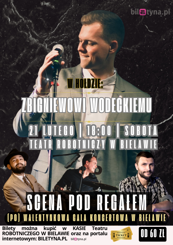 Dołączcie do nas 21 dnia LUTEGO w sobotę o godzinie 19:00 i przekonajcie się, jak brzmi autentyczny hołd dla mistrza Zbigniewa Wodeckiego w wykonaniu artystów, którzy potrafią przełożyć emocje na nowy język muzyczny w pięknej sali koncertowej Teatru Robotniczego w BIELAWIE