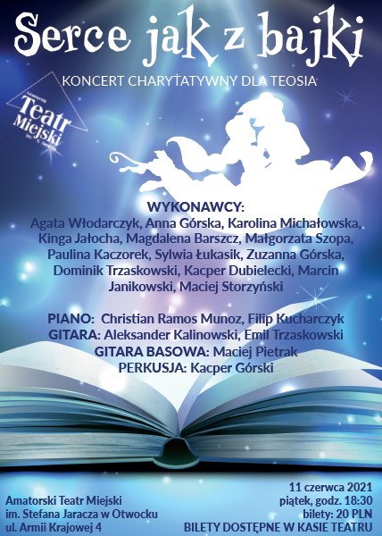 Zapraszamy serdecznie na koncert charytatywny utworów z bajek Disneya, podczas którego zbierane będą środki na leczenie Teosia Gorskiego, który od urodzenia ma dysplazję stawów biodrowych i nieprawidłową budowę rąk i nóg.