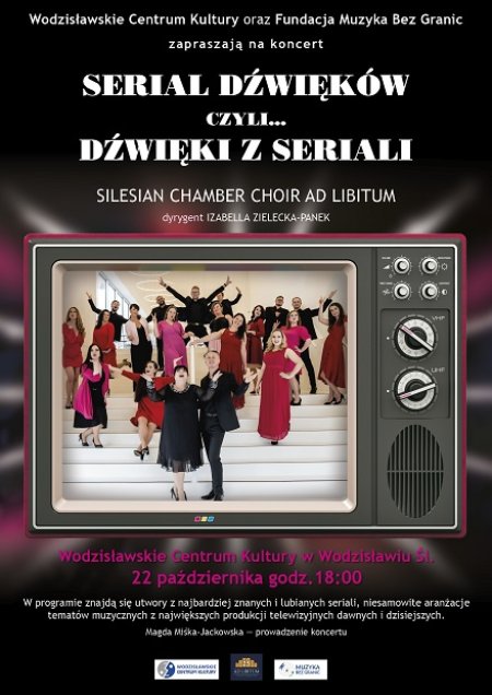 Któż nie zna dźwięków z takich seriali jak „Janosik”, „Czterdziestolatek”, „Wiedźmin”, „Skyfall”, „Na dobre i na złe” czy „Dom z papieru” i „Friends”? Utwory popularne i świetnie znane, ale w wyjątkowych aranżacjach będziemy mogli usłyszeć już 22 października w Wodzisławskim Centrum Kultury. To za sprawą wyjątkowego koncertu „Serial Dźwięków czyli... Dźwięki z seriali” w wykonaniu Silesian Chamber Choir Ad libitum/Śląskiego Chóru Kameralnego „Ad libitum” pod dyrekcją Izabelli Zieleckiej-Panek.