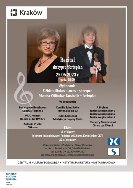 Wykonawcy: Elżbieta Stolarz Lucas (skrzypce) oraz Monika Wilińska – Tarcholik (fortepian)