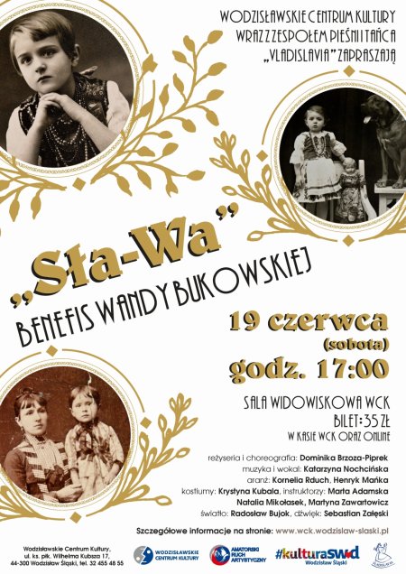 Wodzisławskie Centrum Kultury zaprasza na koncert w wykonaniu Zespołu Pieśni i Tańca Vladisalvia pn. „Sła-Wa – Benefis Wandy Bukowskiej”. Koncert został zaplanowany na 19 czerwca o godz. 17:00.