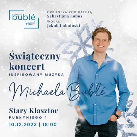 "Śladami Michaela Buble" to koncert, muzyczna podróż inspirowana twórczością kanadyjskiej gwiazdy. Stworzymy niesamowitą atmosferę, prezentując zarówno utwory świąteczne jak i największe hity croonera zza oceanu. Doskonała okazja by delektując się dobrą muzyką poczuć klimat Bożego Narodzenia.