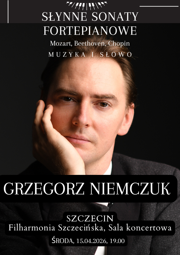 Są koncerty, które pozostają w pamięci na długo. Są też takie, które zmieniają nasze spojrzenie na muzykę – i siebie samych. Takim wydarzeniem będzie z pewnością recital fortepianowy Grzegorza Niemczuka pod tytułem „Słynne Sonaty Fortepianowe – muzyka i słowo”. To nie tylko koncert – to wciągająca opowieść, spotkanie z legendarnymi Sonatami fortepianowymi Mozarta, Beethovena i Chopina.