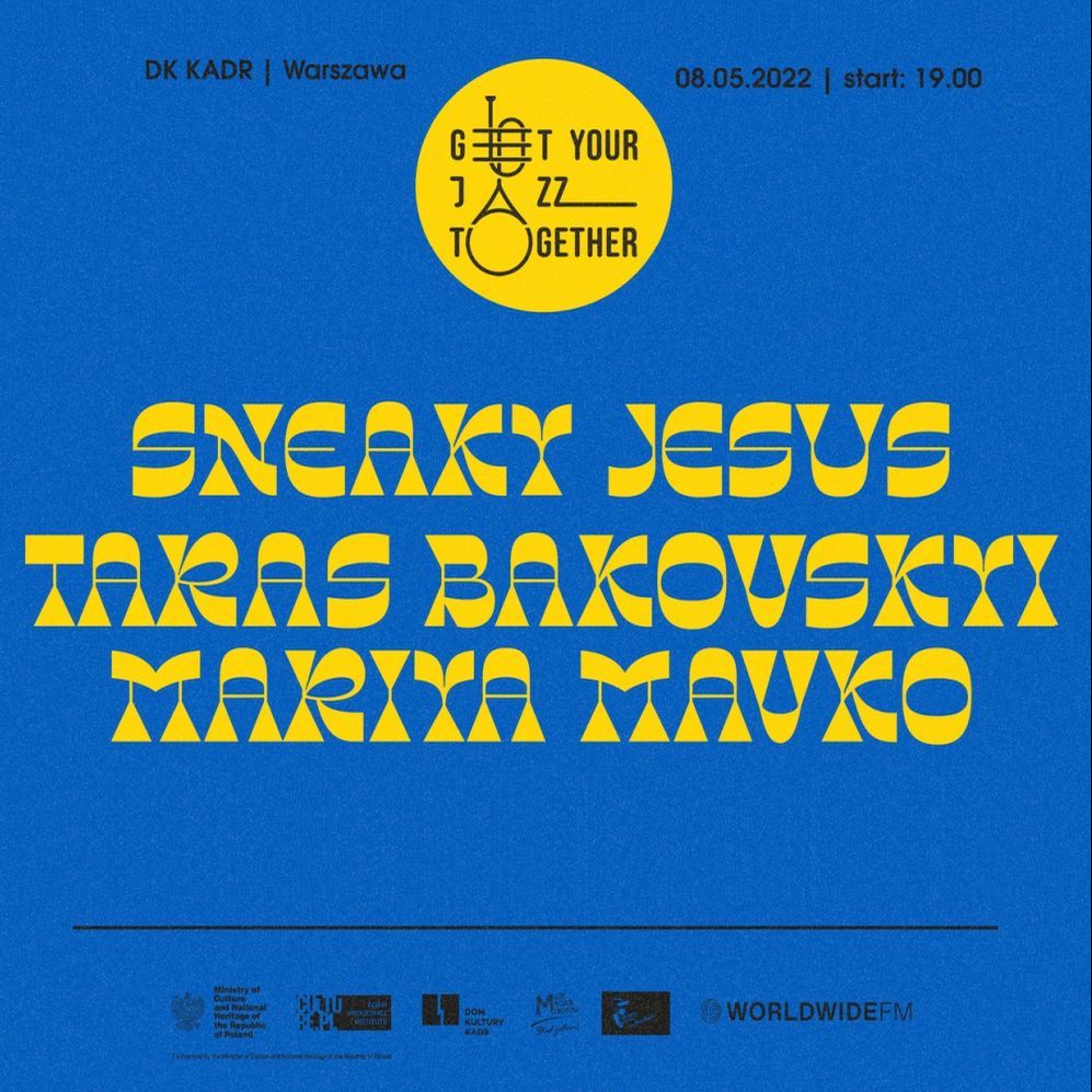 Gośćmi specjalnymi nu-jazzowego zespołu Sneaky Jesus będą wirtuozi z Ukrainy: flecistka i wokalistka Mariya Mavko i saksofonista Taras Bakovskyi. Koncert organizowany we współpracy z Instytutem Adama Mickiewicza w ramach cyklu „Get Your Jazz Together” i będzie retransmitowany w rozgłośni Worldwide FM.