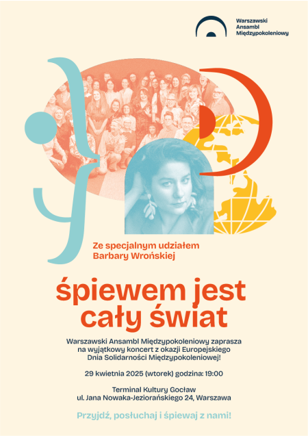 Zapraszamy na wyjątkowe muzyczne święto, podczas którego połączymy nasze głosy i serca w radosnym koncercie! Warszawski Ansambl Międzypokoleniowy zaprasza Was na niezwykłe wydarzenie, gdzie wspólne śpiewanie stanie się mostem między pokoleniami. Przygotujcie się na moc muzycznych wrażeń i możliwość dołączenia do nas na scenie podczas specjalnego Sing Alongu - czyli wspólnego śpiewania na głosy! A to nie koniec niespodzianek: na scenie dołączy do nas Barbara Wrońska
