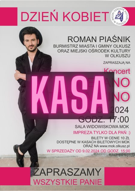 Bilety w cenie 10 zł dostępne od 9.02.2024 r. od godziny 15:00 w kasach biletowych MOK oraz na www.mok.olkusz.pl.