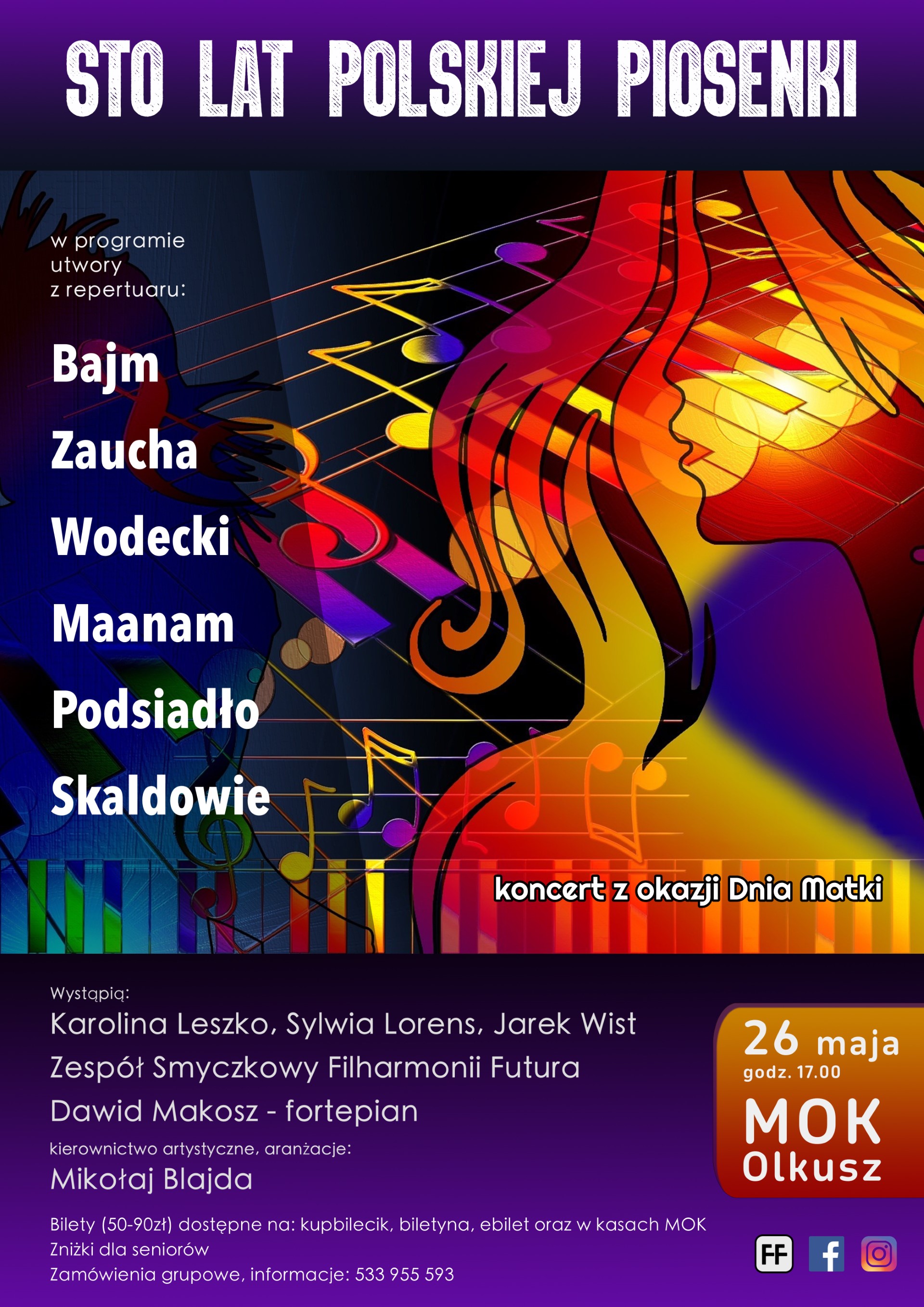 Usłyszymy najpiękniejsze piosenki powstałe w latach 1922-2022 r., z repertuaru m.in.: Zauchy, Wodeckiego, Podsiadło oraz zespołów: Maanam, Skaldowie i Bajm.