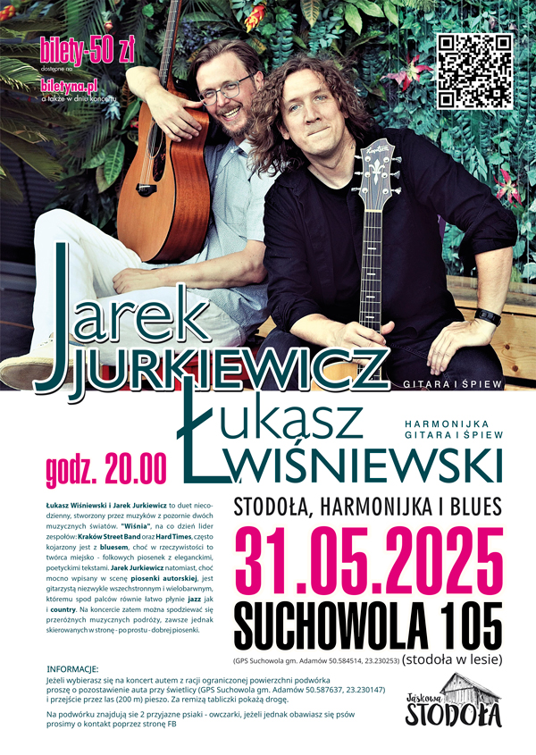 WAŻNE: Jeżeli wybierasz się na koncert autem z racji ograniczonej powierzchni podwórka proszę o pozostawienie auta przy remizie (GPS Suchowola gm. Adamów 50.587637, 23.230147) i przejście przez las (200 m) pieszo. 🚶♂️🌲🌲🌲