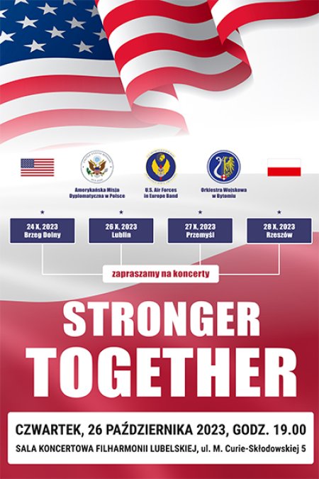 Brzeg Dolny, Lublin, Rzeszów i Przemyśl. Orkiestra Koncertowa Sił Powietrznych Stanów Zjednoczonych w Europie stanie ramię w ramię na scenie ze „stalowymi mundurami” Sił Powietrznych Orkiestry Wojskowej z Bytomia, by zagrać cztery wyjątkowe koncerty. Publiczność czeka niezwykła podróż muzyczna przez klasyczne standardy oraz amerykańskie i polskie hity estradowe pod batutą dwóch dyrygentów, Majora Toro i Kapitana Siwka.