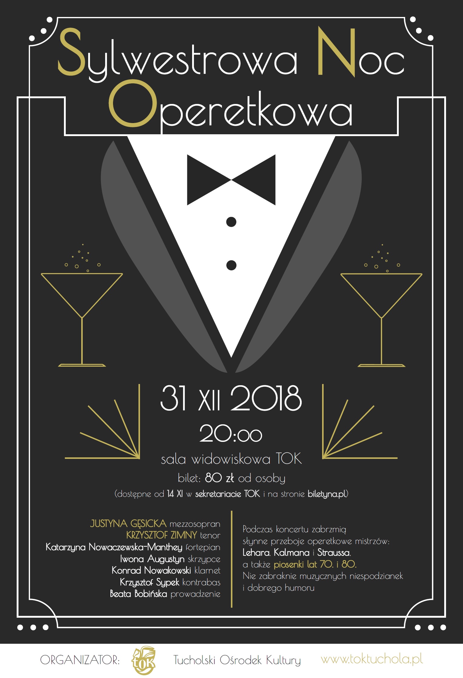 Bilety: 80 zł od osoby – przedsprzedaż od 14 listopada 2018 r. w sekretariacie TOK lub przez stronę internetową.