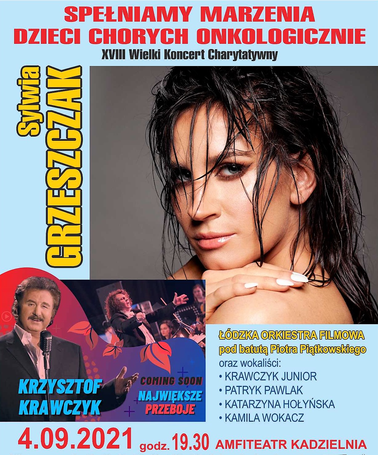 Pierwszą cześć koncertu wypełni Łódzka Orkiestra Filmowa w repertuarze Krzysztofa Krawczyka, zaś w drugiej części wystąpi utalentowana wokalistka i pianistka SYLWIA GRZESZCZAK z własnym zespołem.