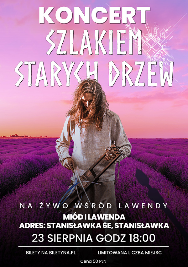 Serdecznie zapraszamy po raz drugi na wyjątkowy koncert zespołu Szlakiem Starych Drzew, który odbędzie się na malowniczej plantacji lawendy Miód i Lawenda, położonej w sercu Kazimierskiego Parku Krajobrazowego.
