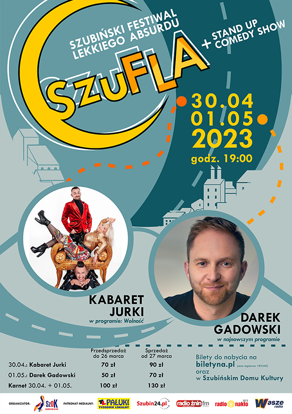 Zapraszamy na kolejną edycję Szubińskiego Festiwalu Lekkiego Absurdu SzuFLA 2023. Piąta edycja wydarzenia, to okazja do podwojenia dawki rozrywki. Znajdzie się coś dla miłośników formy kabaretowej i tej bardziej ostrej czyli stand-upu.