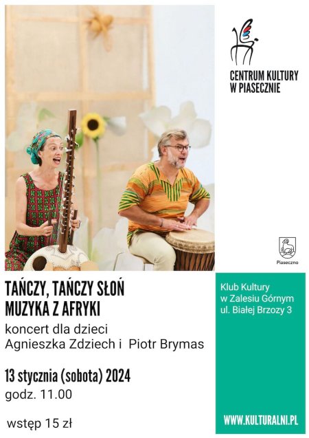 TAŃCZY, TAŃCZY SŁOŃ. MUZYKA Z AFRYKI koncert dla dzieci – Agnieszka Zdziech, Piotr Brymas