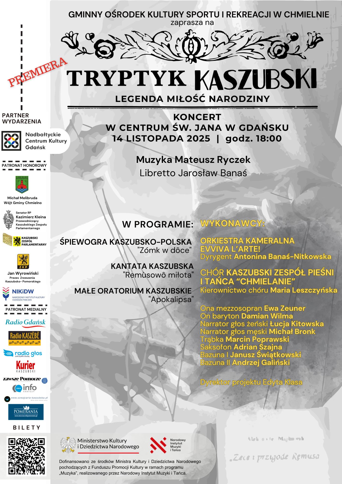 "TRYPTYK KASZUBSKI - legenda, miłość, narodziny" na który składają się dzieła muzyczne skomponowane przez Mateusza Ryczka na zamówienie Gminnego Ośrodka Kultury Sportu i Rekreacji w Chmielnie: Śpiewogra "Zómk w dôce" (prapremiera odbyła się w 2022 r.), Kantata "Remùsowô Miłota" (2023 r.) i Małe Oratorium Kaszubskie "Apokalipsa" (2024) na mezzosopran, baryton, sopran, saksofon, orkiestrę smyczkową i chór. Kanwą snująca wątek przez wszystkie trzy części jest powieść Aleksandra Majkowskiego „Żëcé i przigòdë Remùsa” będąca klasyką literatury kaszubskiej. W Śpiewogrze wykorzystano także wiersz Oscara Wilde “Śpiewaj pieśni żałości, lecz niech dobro zwycięży” w tłumaczeniu Joanny Stadler. Warstwa tekstowa Oratorium zawiera wybrane fragmenty Apokalipsy św. Jana w przekładzie na język kaszubski z języka greckiego o. Adama Sikory OFM, w kantacie wykorzystano poezję kaszubską Hanny Makurat-Snuzik. Premiera dzieła scenicznego z librettem w języku kaszubskim to wydarzenie niecodzienne i wciąż unikatowe.