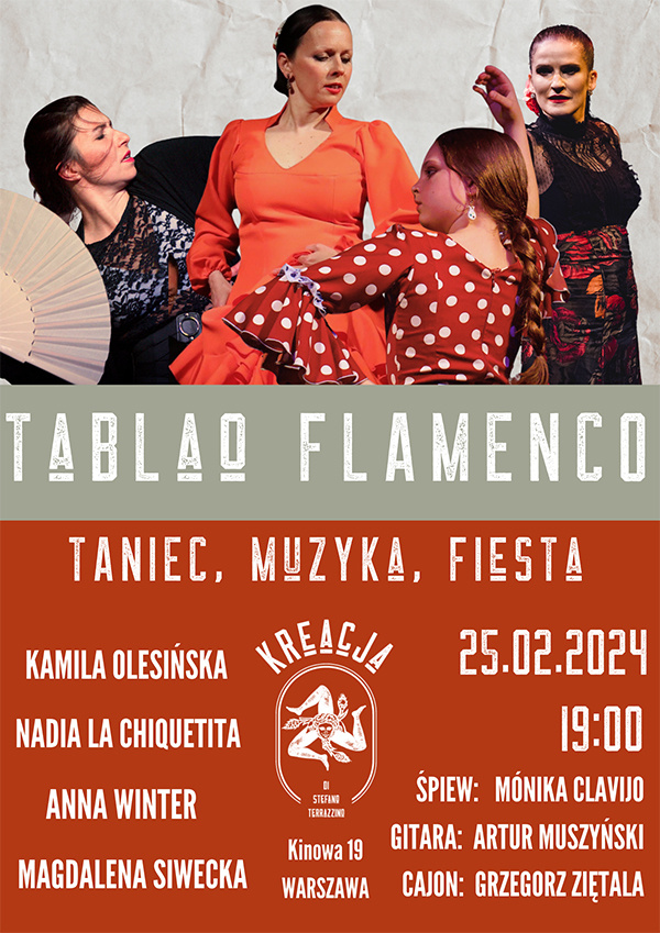 Zapraszamy na Koncert z cyklu Tablao Flamenco. Gorąca atmosfera, swobodny charakter wydarzenia, wirtuozowskie popisy artystów przeplecione głęboką emocjonalnością pozwolą poczuć się jak w kolebce Flamenco - Andaluzji.