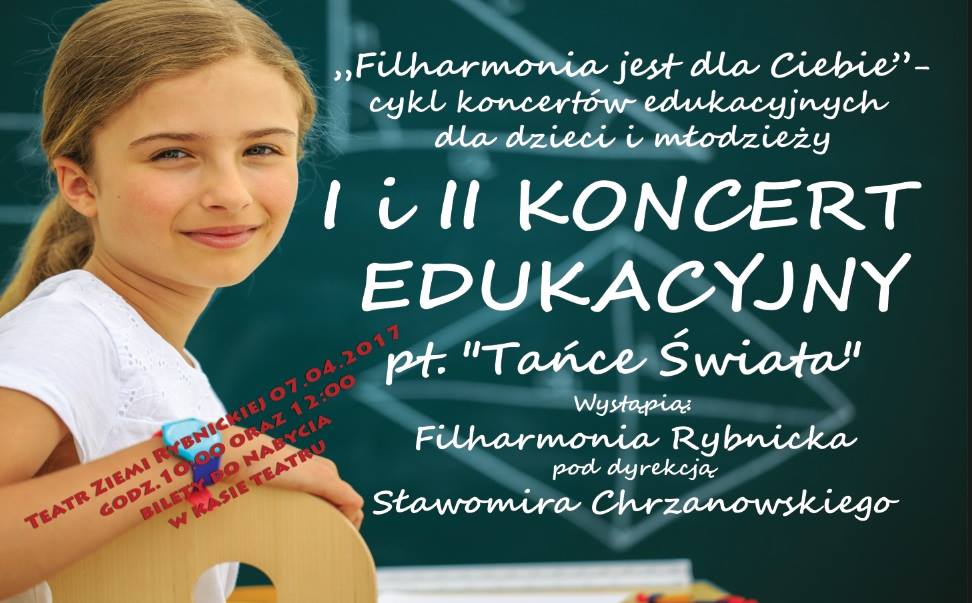 ORKIESTRA SYMFONICZNA W PEŁNYM SKŁADZIE Z SOLISTAMI POD DYREKCJĄ SŁAWOMIRA CHRZANOWSKIEGO W RAMACH CYKLU EDUKACUJNEGO „FILHARMONIA JEST DLA CIEBIE” wystąpi 7 kwietnia 2017 godz. 10.00 w KONCERTCIE pt. „TAŃCE ŚWIATA w muzyce”