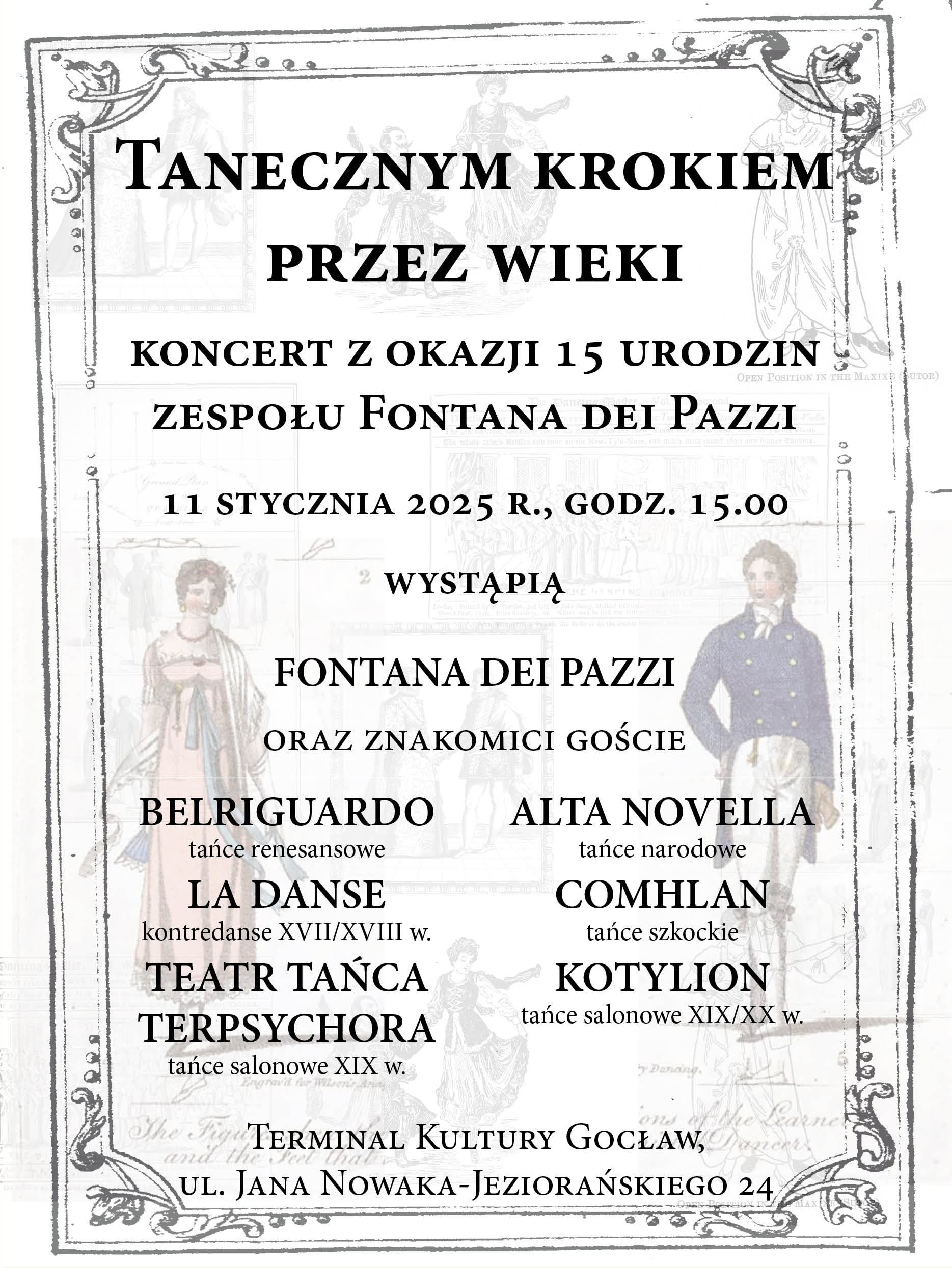 Zapraszamy na koncert „Tanecznym krokiem przez wieki” z okazji 15-lecia zespołu Fontana dei Pazzi!