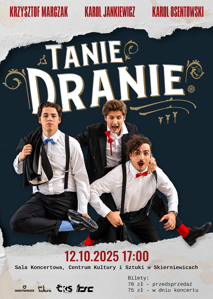 Centrum Kultury i Sztuki w Skierniewicach zaprasza na koncert „Tanie Dranie” z piosenkami z Kabaretu Starszych Panów.