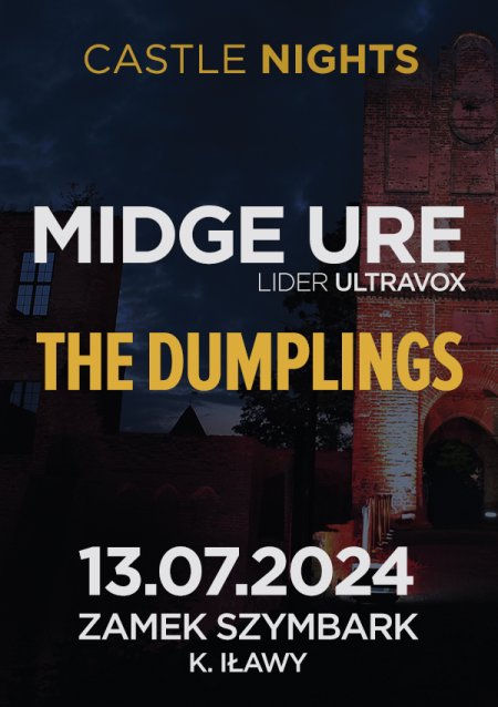 Zapraszamy na pierwsze w ponad 700-letniej historii Zamku w Szymbarku profesjonalne, pełnoformatowe wy-darzenie kulturalne - koncert Midge’a Ure’a - gwiazdy nurtu new romantic i lidera Ultravox oraz The Dumplings – polskiej rewelacji alternatywnego popu. Na tle monumentalnych ruin zamkowych w dniu 13 lipca 2024 r. koncert zainauguruje cykliczne wydarzenia kulturalne w ramach projektu „Castle Nights”.