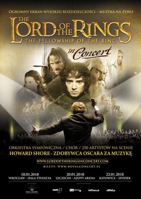 Po raz pierwszy w Polsce niezwykłe widowisko. Pierwsza część trylogii J.R.R. Tolkiena - "Władca Pierścieni: Drużyna Pierścienia in Concert". Film na ekranie z muzyką na żywo Howarda Shore’a, zdobywcą trzech Oscarów. Całość w towarzystwie orkiestry symfonicznej, chóru oraz solistów. W sumie 250 osób na jednej scenie.