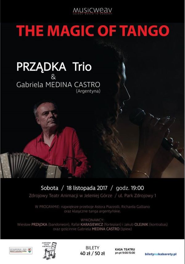 W programie największe przeboje Astola Piazzolli i tanga klasyczne, doskonale zaśpiewane przez argentyńską wokalistkę z towarzyszeniem PRZĄDKA Trio w składzie: Wiesław Prządka (bandoneon), Rafał Karasiewicz (fortepian) i Jakub Olejnik (kontrabas).