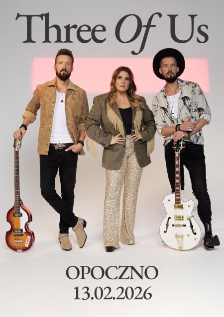 Miejski Dom Kultury w Opocznie zaprasza na koncert zespołu Three of Us, który odbędzie się 13 lutego 2026 roku o godzinie 18:00 w sali głównej MDK.
